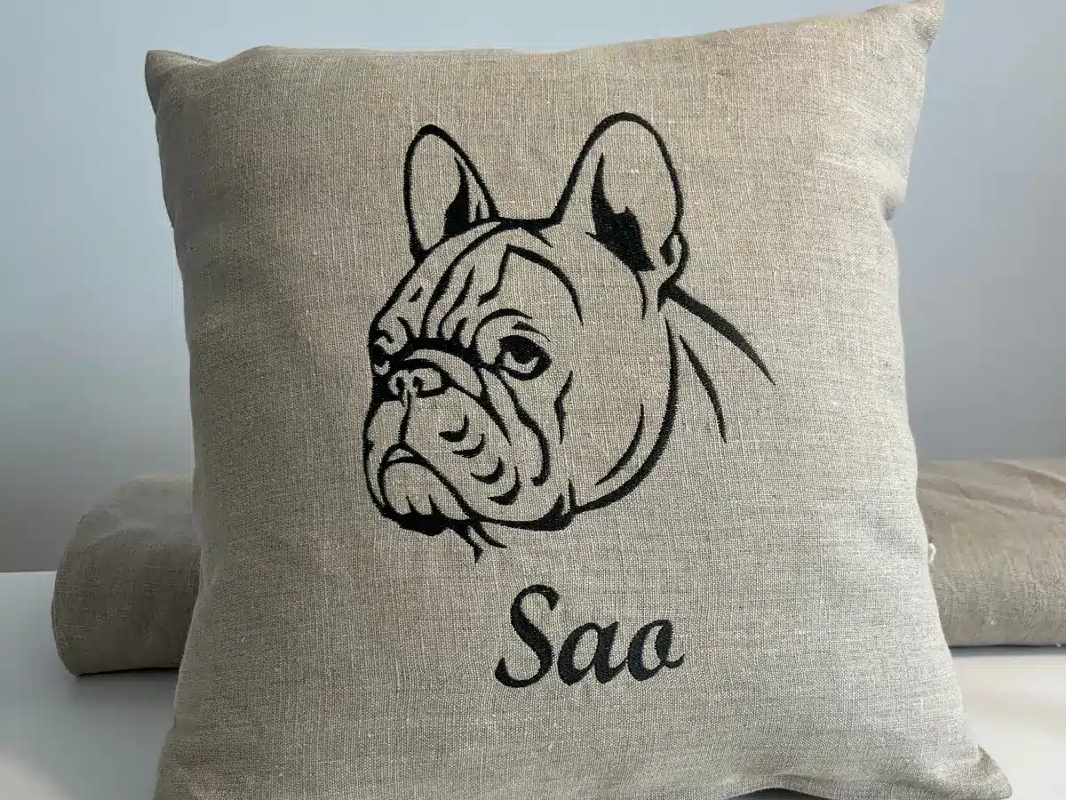 Nombreux sont ceux qui choisissent aussi d’ajouter le prénom de leur animal, ou un petit mot doux, près du portrait. Ce détail discret agit comme une signature. Ce simple prénom brodé devient chargé de tout ce qu’il évoque : des habitudes, des surnoms, des moments partagés, des souvenirs qui ne s’effacent pas.