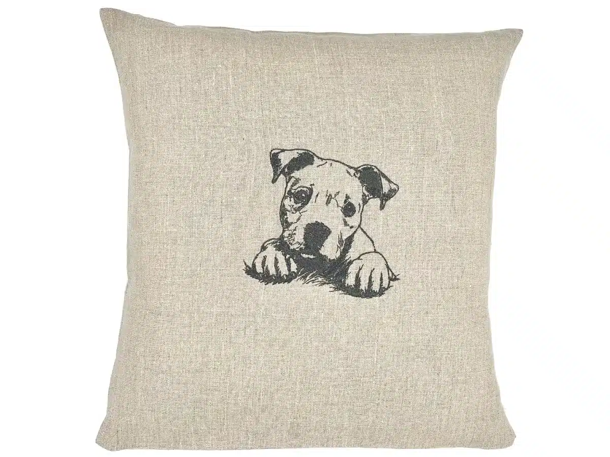 Une pièce unique : un coussin brodé American Staffordshire Terrier à collectionner