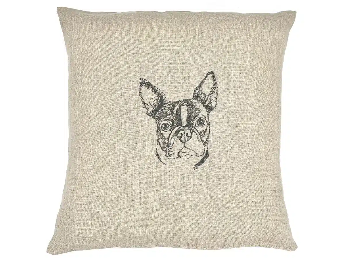 Chaque housse de coussin Boston terrier est confectionnée à partir d’un lin soigneusement sélectionné, brut et respirant, dont le toucher agréable et la teinte sobre apportent élégance et authenticité. Cette matière naturelle, à la fois robuste et élégante, fait ressortir une texture légèrement irrégulière qui met en valeur la finesse de la broderie. Le lin joue un rôle essentiel dans l’équilibre du coussin.
