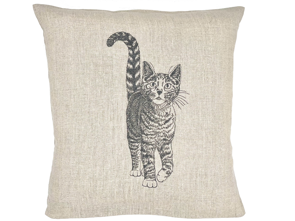 Coussin brodé chat tigré debout