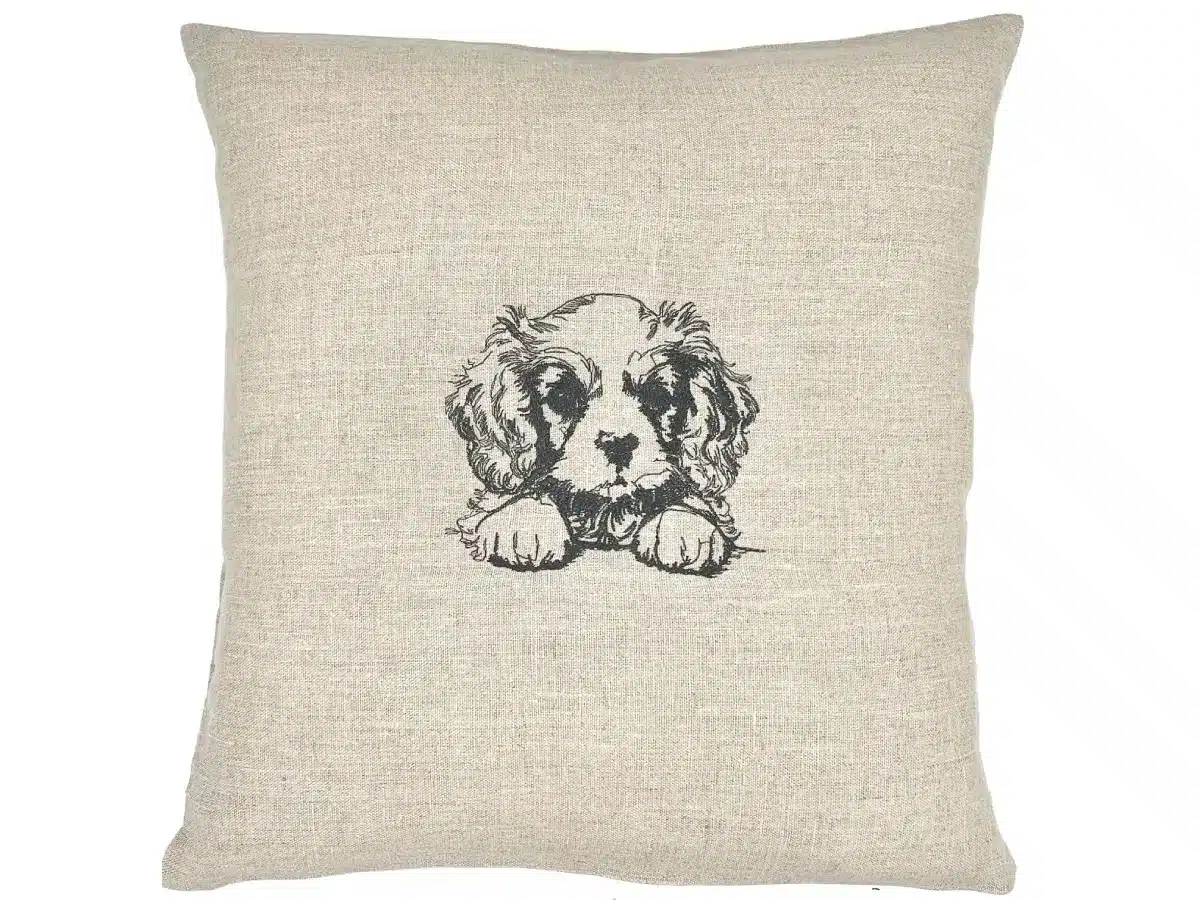 Cette housse de coussin Cavalier King Charles bébé est confectionnée à partir d’un lin soigneusement sélectionné, brut et respirant, dont le toucher agréable et la teinte sobre apportent élégance et authenticité. Cette matière naturelle, à la fois robuste et élégante, fait ressortir une texture légèrement irrégulière qui met en valeur la finesse de la broderie. Le lin joue un rôle essentiel dans l’équilibre du coussin.