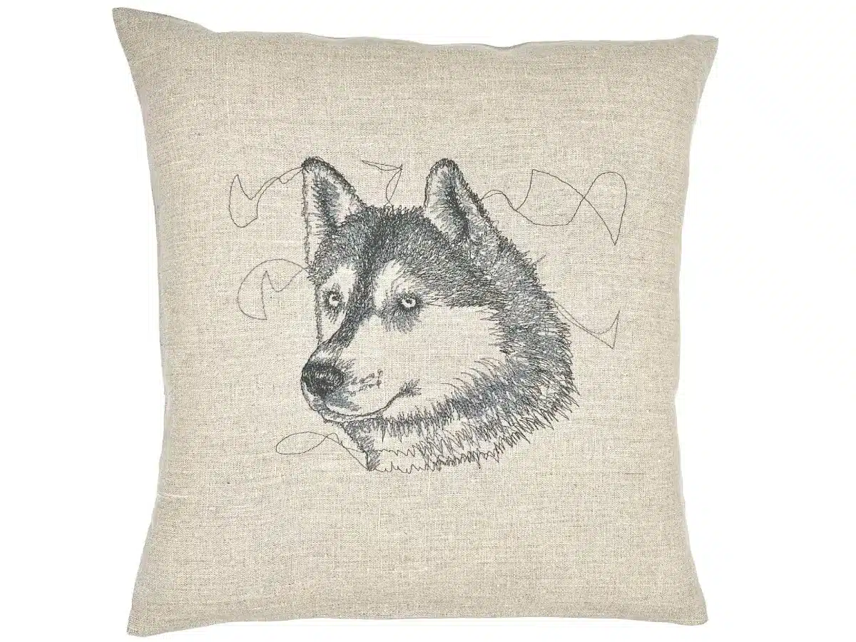 Le coussin Husky est entièrement conçu, brodé et fabriqué dans mon atelier en Provence, à Gréoux les Bains.