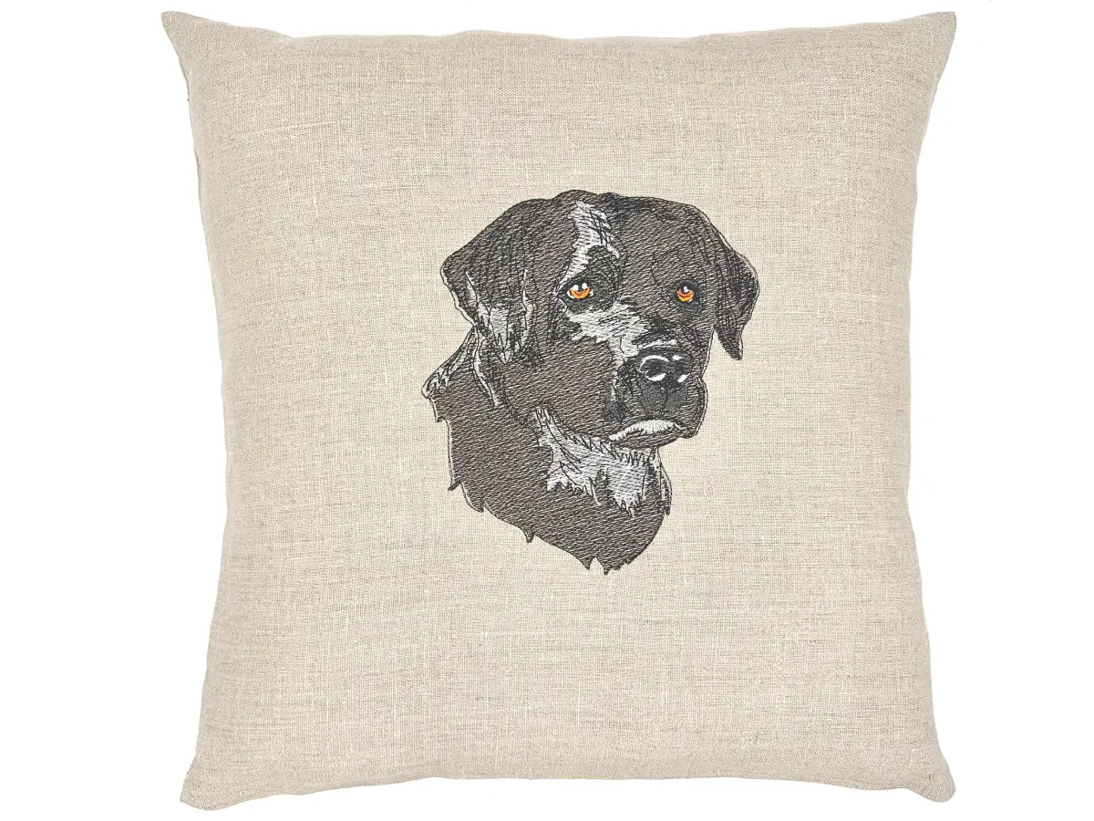 Une pièce unique à collectionner : le coussin Labrador de trois quarts