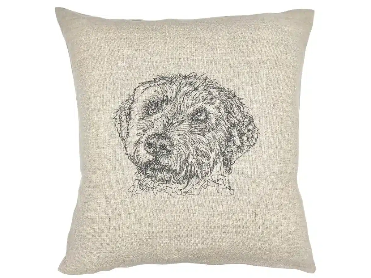 Une broderie pleine de malice d’un Lagotto Romagnolo au regard pétillant