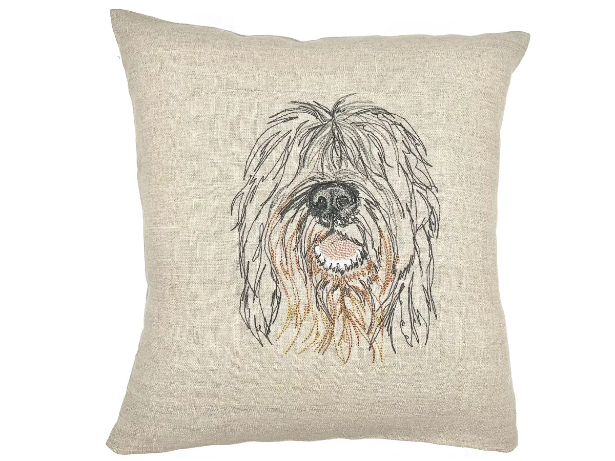 Ce coussin Schapendoes fait partie de ma série de portraits d’animaux brodés, une collection singulière qui rend hommage à la diversité du monde animal et à la beauté de la nature, où chaque point, chaque couture, chaque finition reflète un savoir-faire exigeant.